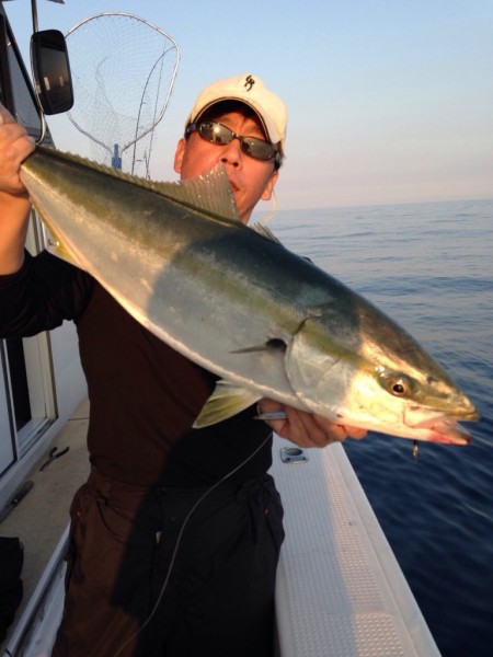 □22日のジギング ブリ 3本 メジロ 3本 他、真鯛55㎝、ハマチ、ガシラ 今日も一日、お疲れ様でした。 明日22日もジギングで出船しますm(_ _)m!