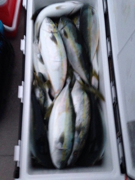 □20日のジギングハマチ 45~55㎝ 250匹オーバー 他、ヒラマサ、メジロ、マダコ 20日ぶりの出船でした。 ハマチ爆釣V(^_^)V! ヒラマサの顔も見れました。